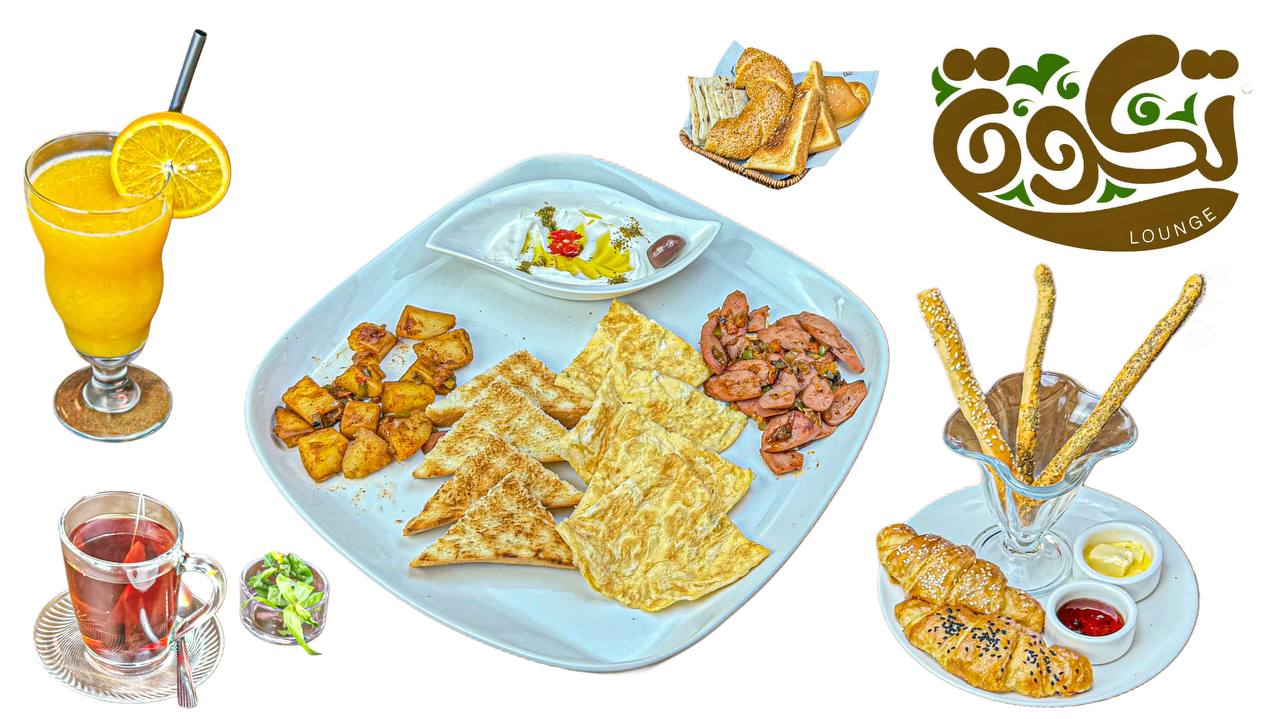 بيض(اومليت-بوشيه-سكرامبل)-مقبلات(حمص-متبل-لبنه)-مشروب(بلاك كوفي-برتقال-شاي)-كروسون-شابورة-زبدة-مربى